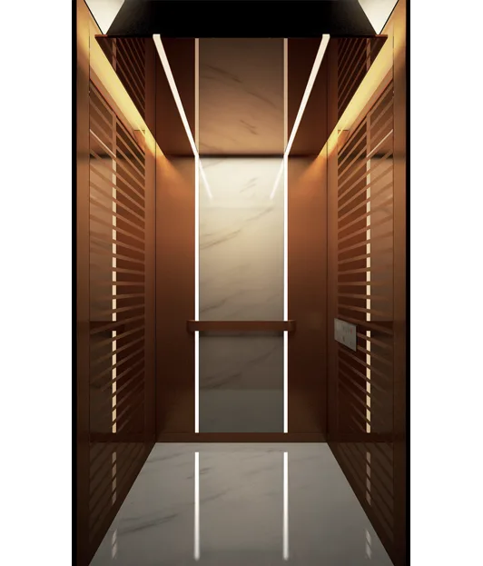 Cabin Wall: Mirror hair pattern stainless steel rose gold plated, mirror etched SS rose