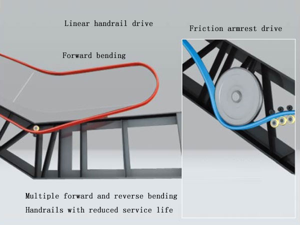 Service lift of high accuracy helical reducer can reach to 20 years(not including bearings): linear handrail drive has greatly prolonged lift of handrail belt; Unloading guide rail setting at upper curve part of escalator step circuit can make the roller not contact guide rail at upper curve part, which reduces wheel pressure and wearing of roller and prolongs lift of roller; Auto oiling device as standard configuration can also prolong service lift of all types of chains; Decoration components adopt stainless steel, which is durable in use.
