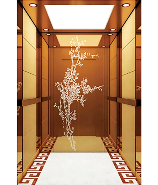 Cabin Wall: Wood veneer embedded with titanium gold stainless steel strip, mirror SS
